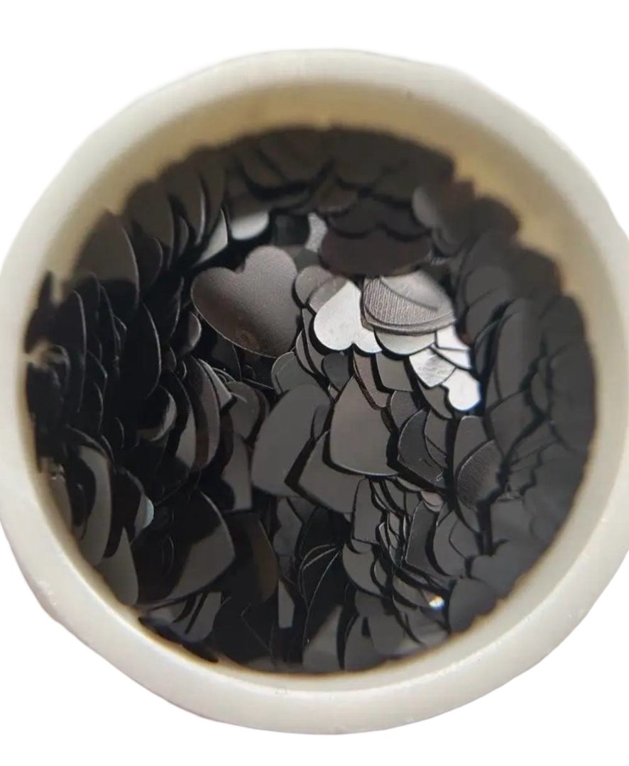 Блестки для ногтей сердечки черные