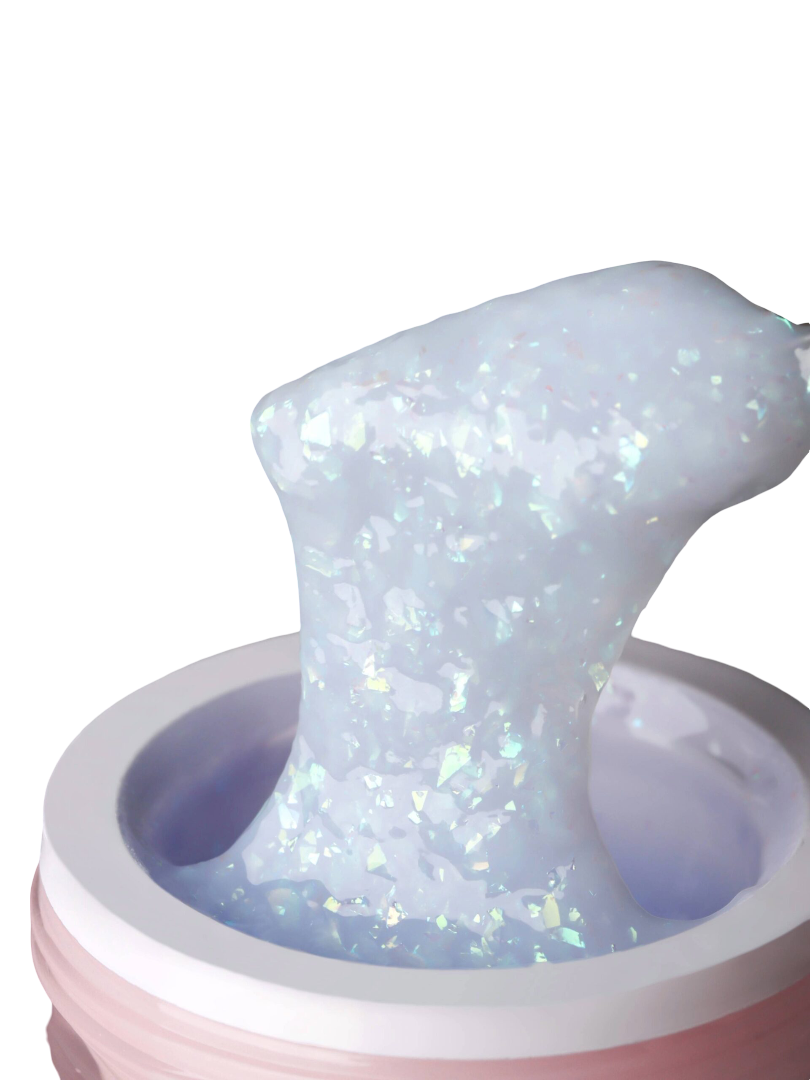 – много красивыхпрозрачно-переливающихсячастиц утопающих в молочной основе. За счёт насыщенности этими частицами гели густые и хрустальные; – средняя скорость выравнивания