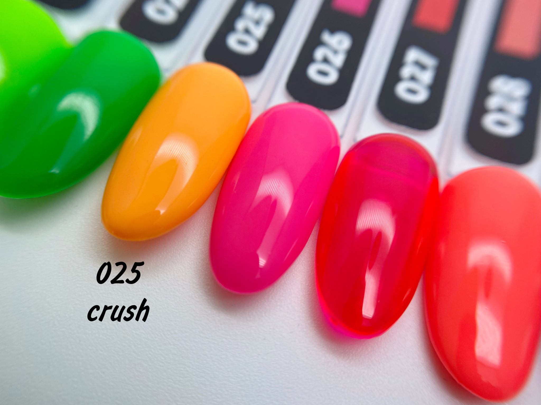 Витражный, неоновый гель-лак. Напоминает яркий вишневый мармелад - оттуда и название «Вишневый мишка». Отлично подойдёт как для самостоятельного покрытия - эффект стеклянных кончиков, так и при нанесении поверх молочной базы - плотный неоновый цвет.