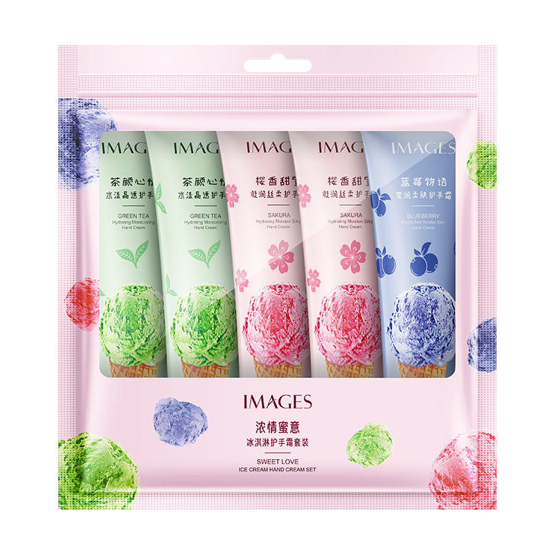 IMAGES Набор кремов для рук с ароматом: сакуры, зеленого чая и черники 5шт