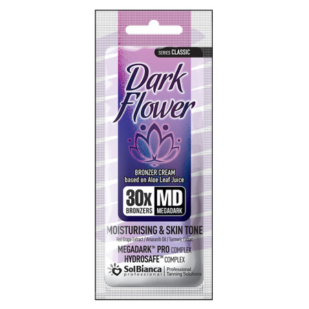 Профессиональный крем-тонус для загара в солярии SolBianca DARK FLOWER в кратчайшие сроки обеспечивает насыщенный оттенок загара, одновременно интенсивно ухаживает за кожей, питает и увлажняет, восстанавливает тургор, делая загар максимально комфортным и равномерным. В основе крема сок алоэ вера и легендарный дуэт. Современный профессиональный автобронзер, комплекс-синергетик MEGADARK PRO, в который наряду с ДГА входит тирозин, редкое масло моринги, а также масло грецкого ореха и экстракт моркови. Комплекс сочетает в себе все 3 необходимых элемента - активаторы, корректоры и пролонгаторы загара, работающие в т.ч. на усиление выработки собственного меланина. Итоговый результат зависит непосредственно от базового оттенка кожи и будет хорошо заметен уже через 3 часа после сеанса.