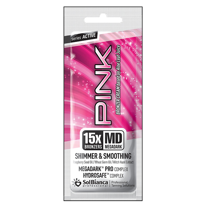 Профессиональный крем для загара в солярии SolBianca PINK с эффектом таинственного мерцания, дарит ровный насыщенный оттенок загара, бережно ухаживает за кожей, питает и увлажняет, делая загар максимально комфортным. В основе крема сок алоэ вера и легендарный дуэт. Современный профессиональный автобронзер, комплекс-синергетик MEGADARK PRO, в который наряду с ДГА входит тирозин, редкое масло моринги, а также масло грецкого ореха и экстракт моркови. Комплекс сочетает в себе все 3 необходимых элемента - активаторы, корректоры и пролонгаторы загара, работающие в т.ч. на усиление выработки собственного меланина. Итоговый результат зависит непосредственно от базового оттенка кожи и будет хорошо заметен уже через 3 часа после сеанса.
