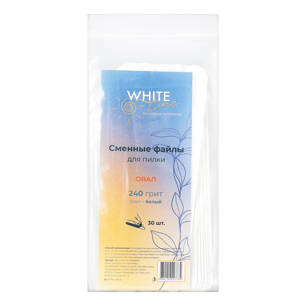 Набор сменных файлов для пилочки овал, белые, 30 шт. Клейкий абразив 240 грит. Одноразовые абразивные файлы на пилку используются для опила натуральных ногтей.