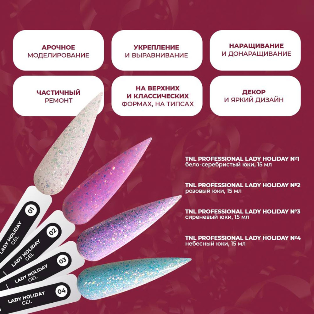 Жесткий гель для наращивания TNL Lady Holiday №04, 15 мл – купить за 355 ₽ | Бьюти Маркет
